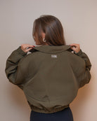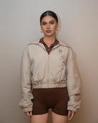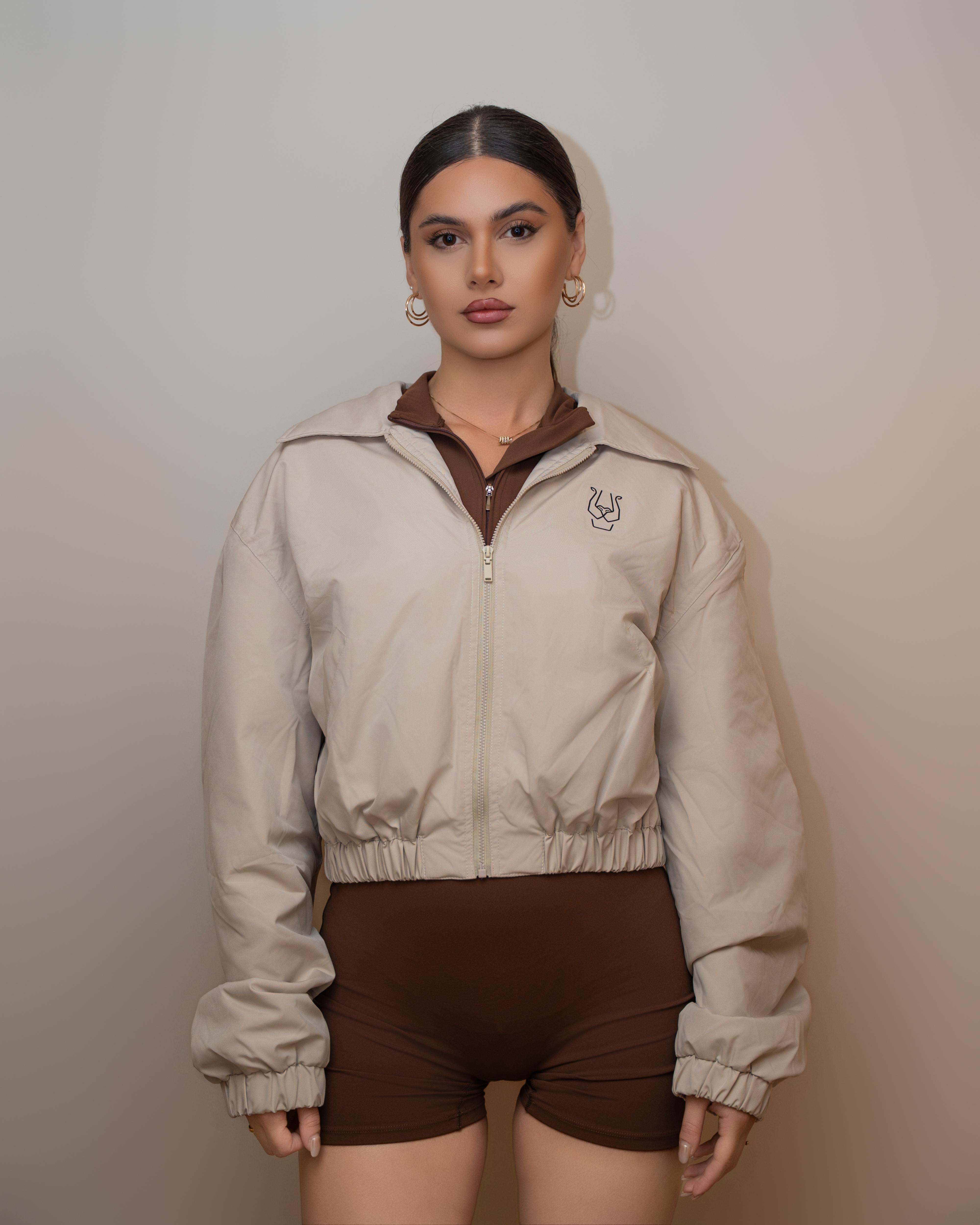 It’s windproof, structured, and has that effortless city look that works from gym to street. The cropped cut sits perfectly at the waist, giving shape without bulk, while the lightweight shell keeps you protected on breezy days.